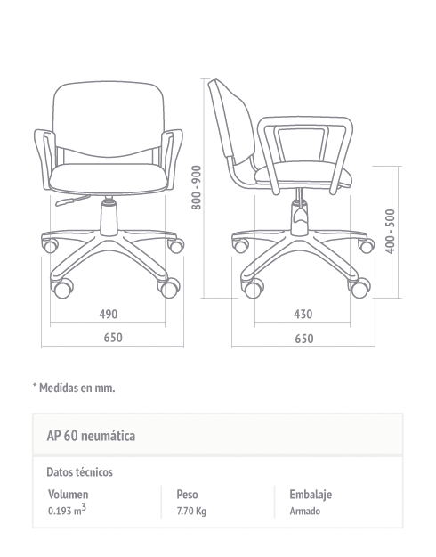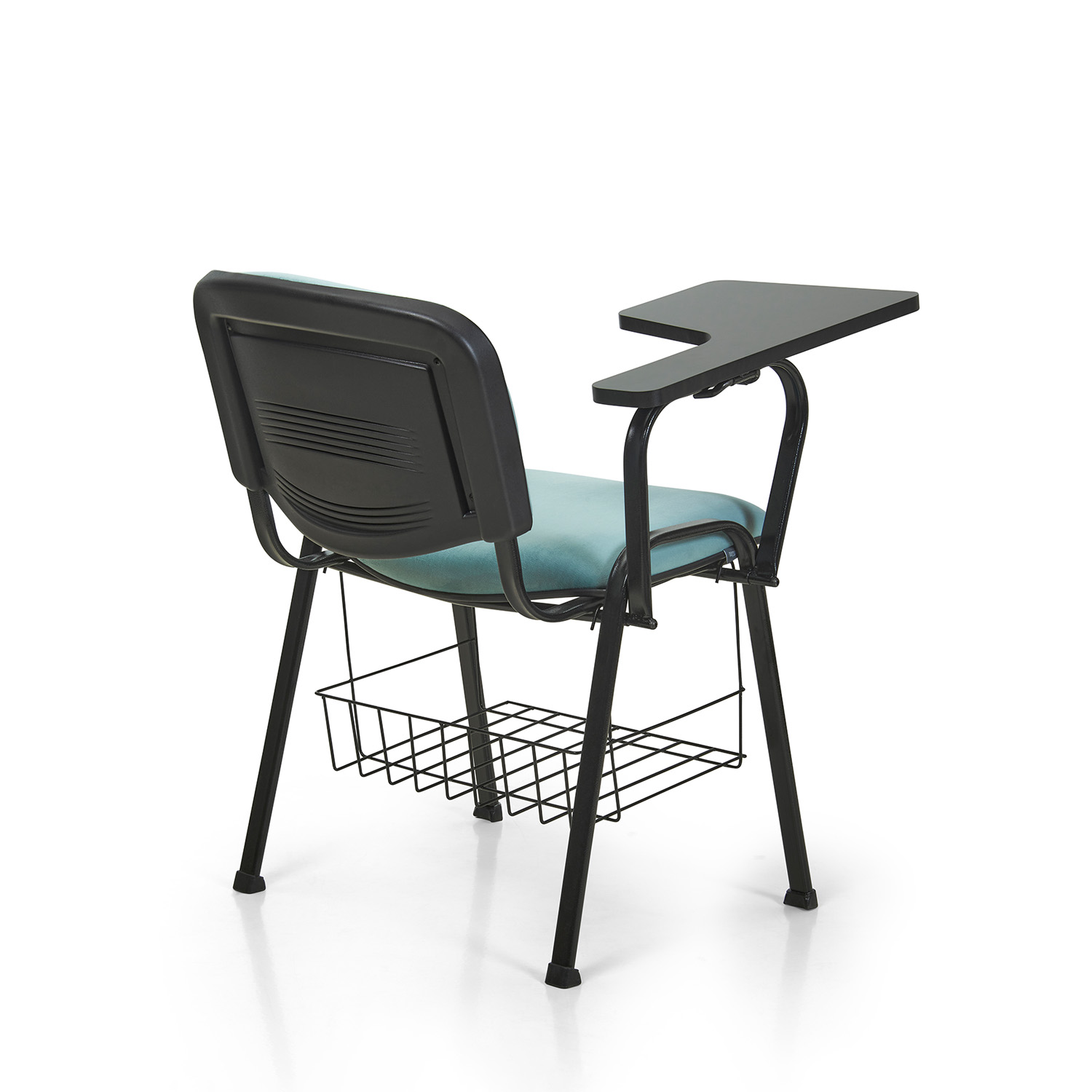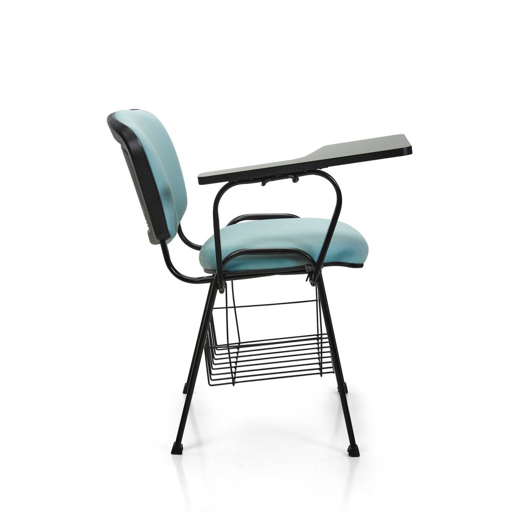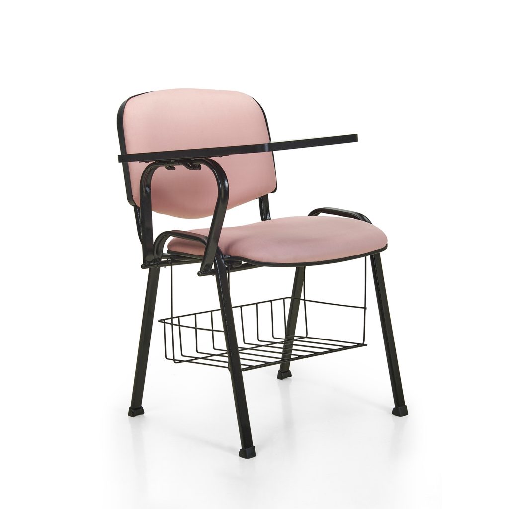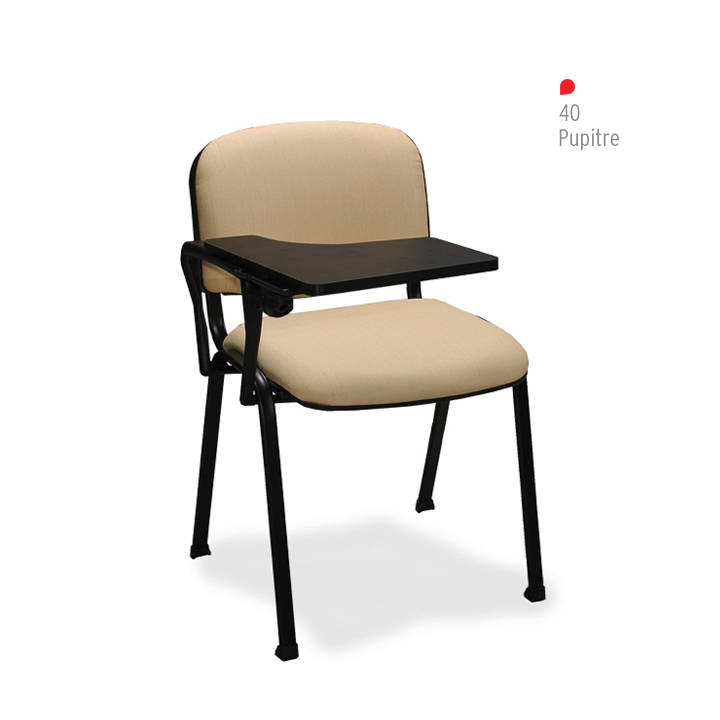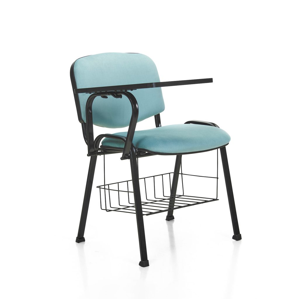 - Opcionales: Apoyabrazos. Base plástica con alma de acero. Estructura fija de 4 patas con o sin apoyabrazos. Kit Apoyapies. Kit Pupitre de Madera. Canasto porta útiles. Regulación neumática de altura de asiento. Ruedas revestidas de material elastómero, muy silenciosa.