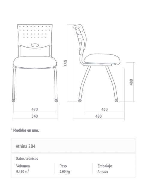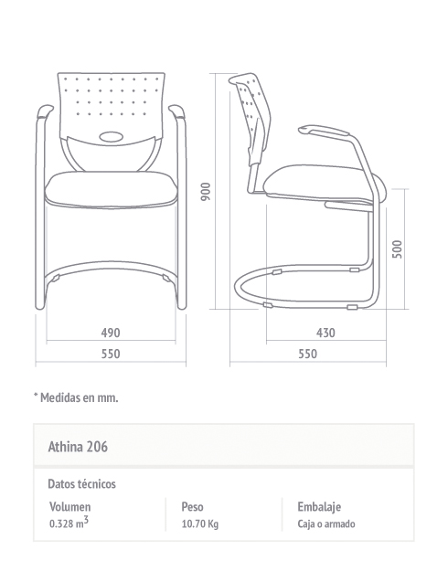 - Opcionales: Estructura trineo con brazos cromada. Estructura fija de cuatro patas negra o cromada.
