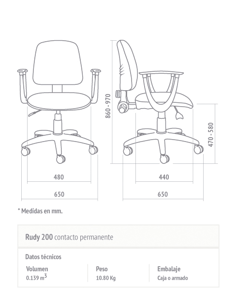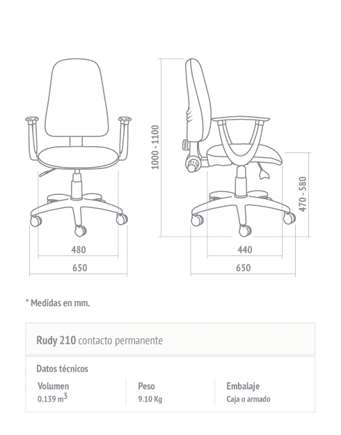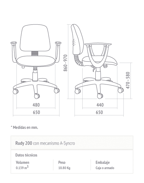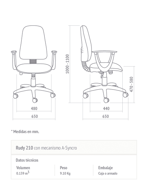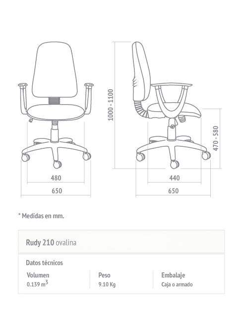 - Opcionales: Apoyabrazos. Base cromada. Base con alma de acero. Kit apoyapies. Ruedas revestidas de material elastómero, muy silenciosa.